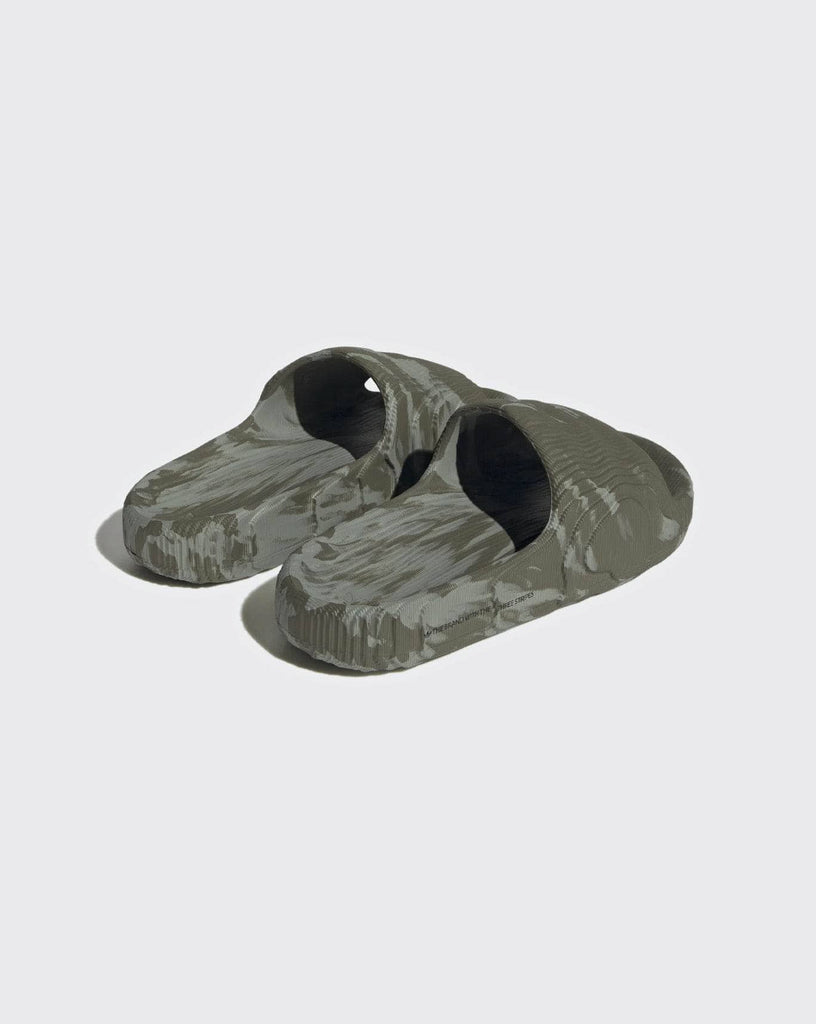 For the design of these Adidas slides we looked to topographic maps illustrating expeditions to Mars and the dimensional stages of a new planet. And the futuristic vibes don't end there. They're built with material made in part from sugarcane, one step on the road to a more sustainable future. Wear them on diverse terrain from wet to dry.