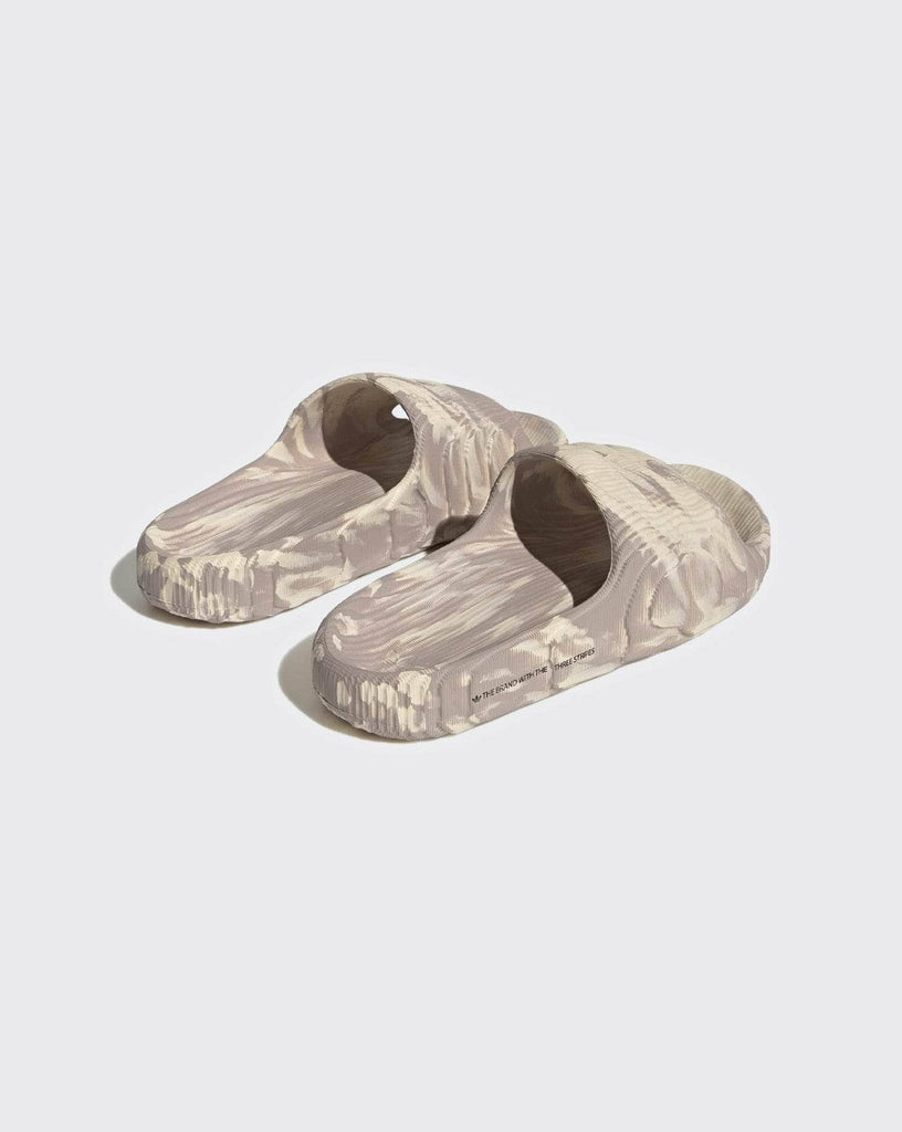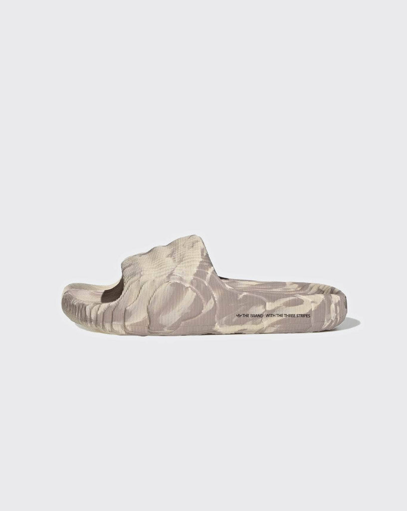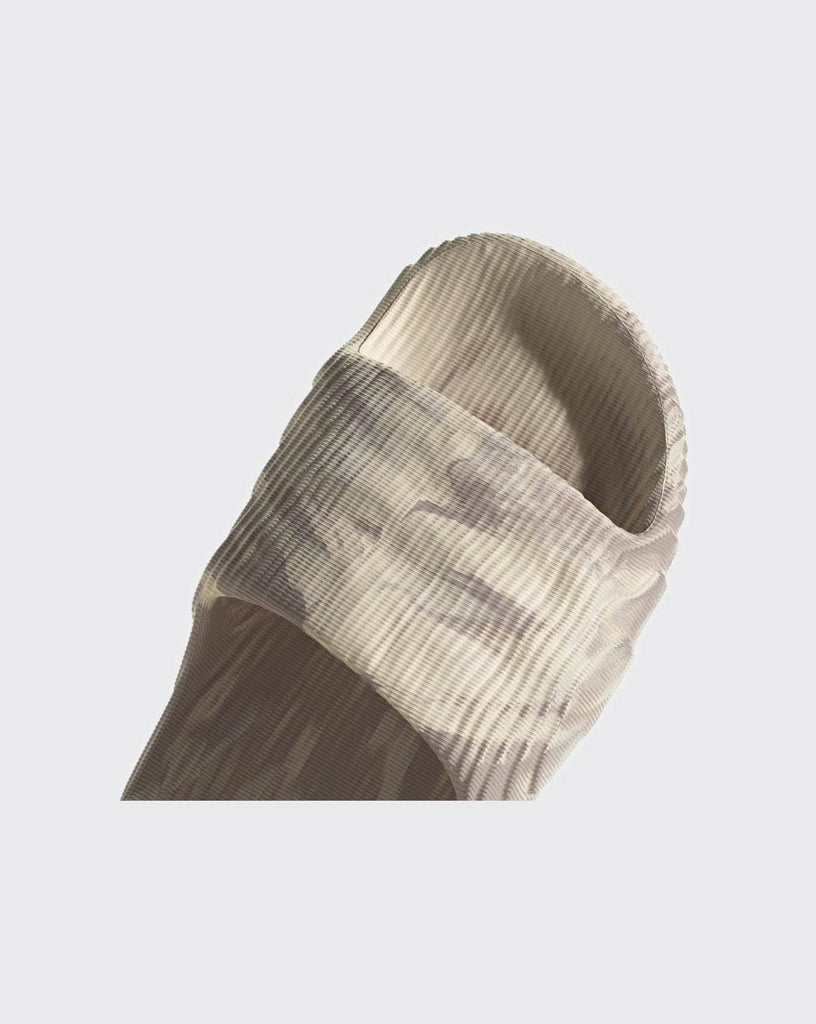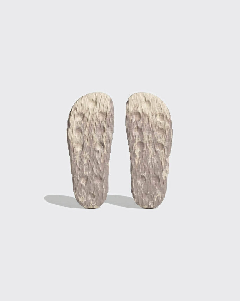 For the design of these Adidas slides we looked to topographic maps illustrating expeditions to Mars and the dimensional stages of a new planet. And the futuristic vibes don't end there. They're built with material made in part from sugarcane, one step on the road to a more sustainable future. Wear them on diverse terrain from wet to dry.