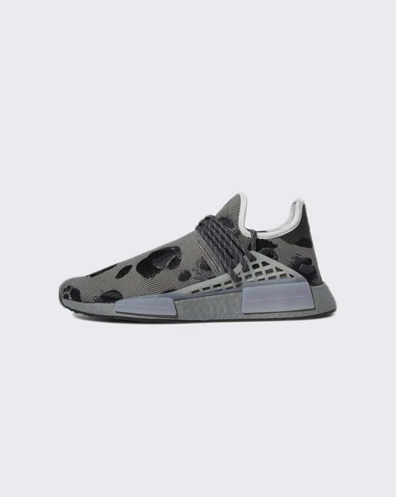 Fresh off the launch of JOOPITER, Pharrell Williams has revisited his adidas NMD Hu Animal Print collaboration, bringing a tame greyscale arrangement to it.