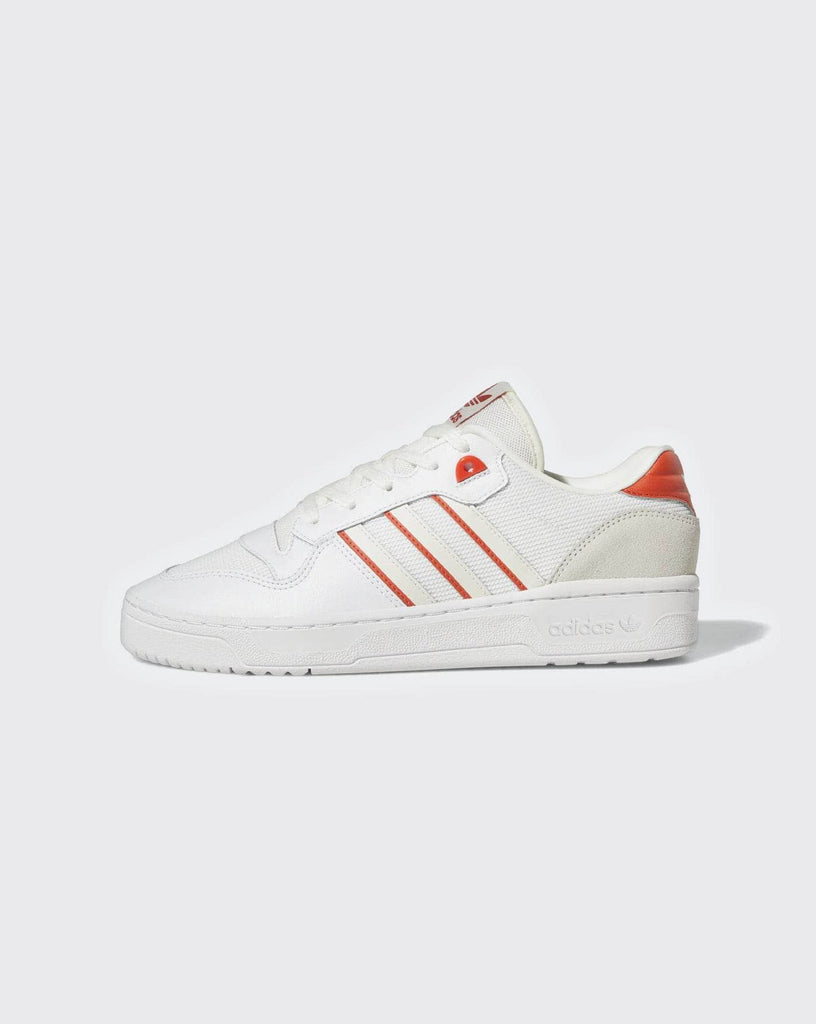 These Adidas Rivalry Low Shoes infuse elite collegiate confidence into the well-loved basketball design. A soft leather, mesh and suede upper combines with vibrant midsole detailing for a fresh spin on the everyday white trainer. Pair them with a classic cardigan or flannel shirt to start your day with positive vibes and determination.