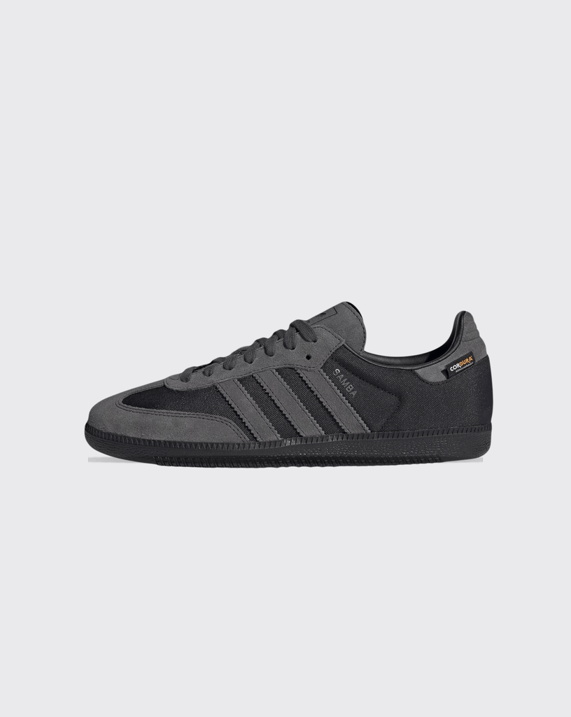 Timeless adidas Originals get fresh update with these men's Samba OG Cordura trainers. Landing in a Core Black and Grey Six colourway, these low-top classics mix soft suede panels and ultra-durable Cordura fabric for style that lasts. They feature a tonal lace fastening and a smooth synthetic lining, while the cushioned insole sits on the OG-inspired rubber outsole. Finished off with the Trefoil on the tongue and the 3-Stripes and Samba wordmark to the sidewalls.
