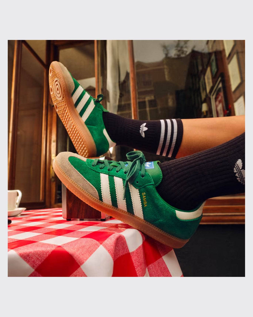 An icon for decades, adidas Samba shoes originated on the indoor field — but they're made for your everyday look. This edition takes design inspiration from Los Angeles football culture, shaping a clean look that stands out while keeping things low-key. A premium suede upper and classic gumsole are hallmarks of heritage style. Pair this casual confidence with everything from tapered pants to loose-fit denim.