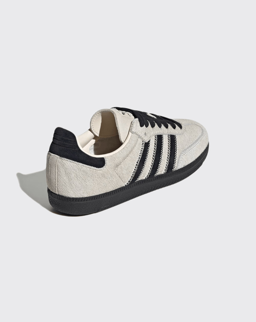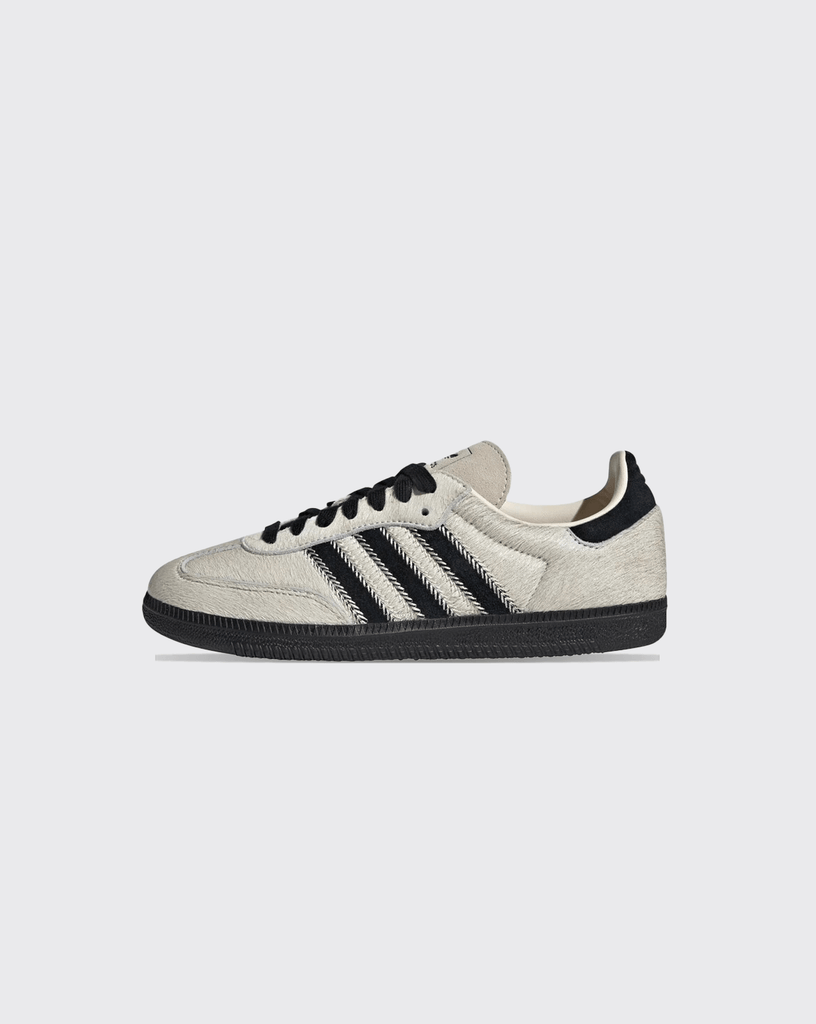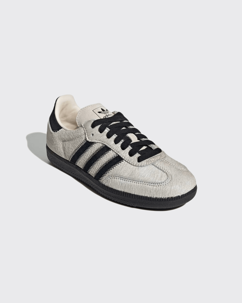 As Adidas continues to broaden its storied lineup of Samba OG with new colorways and designs, the latest iteration reimagines the sneaker with a pony hair build. The pony hair texture envelopes the majority of the upper. This women’s exclusive variant arrives in a minimalist “Wonder White/Core Black” palette, with the overlays, collar and tongue coming in a suede fabrication for enhanced textural contrast. Meanwhile, the laces, collar, 3 Stripes and gum sole are rendered in “Core Black” for a clean and striking finish.