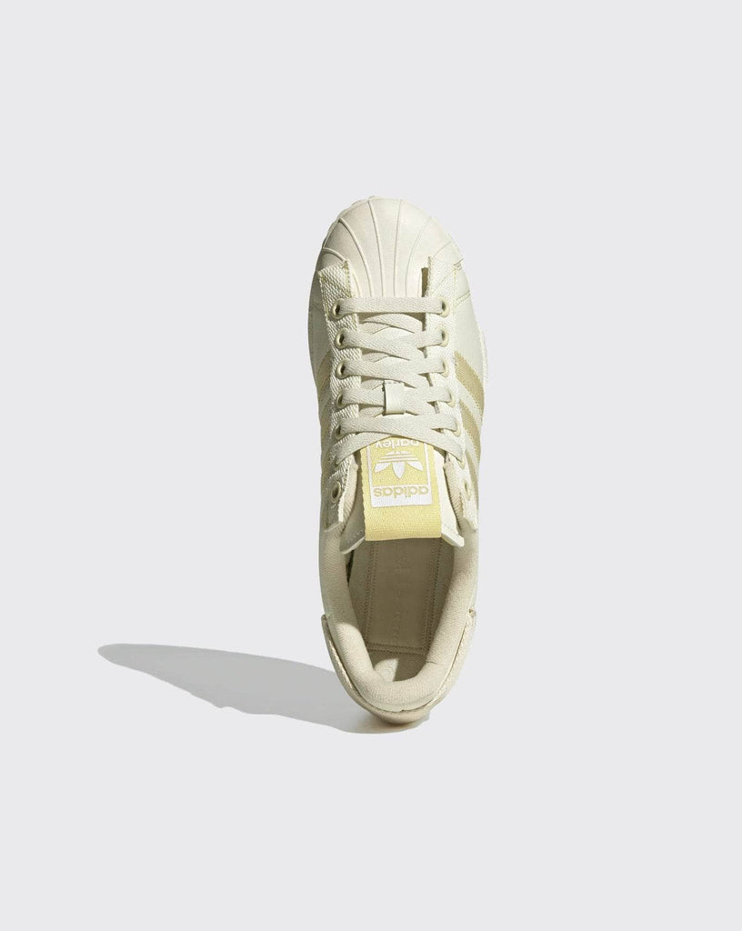 The adidas Superstar shoes have helped B-ballers play for victory back in the '70s and creators express themselves on city streets. Now they're part of our fight to help end plastic waste. Staying true to their roots, this pair brings the '70s nostalgia with a classic look and retro colours. Created in collaboration with Parley for the Oceans, they're reimagined with tongue webbing, 3-Stripes and a heel strap made with upcycled plastic waste.