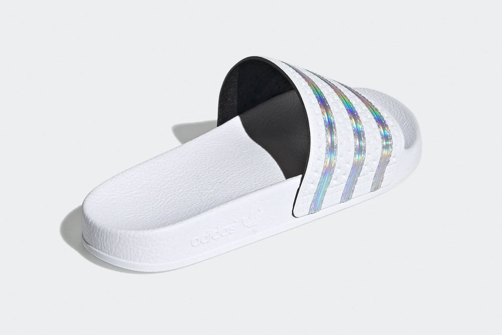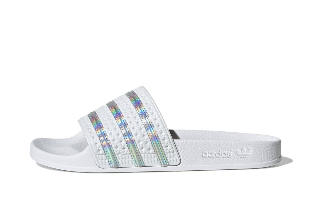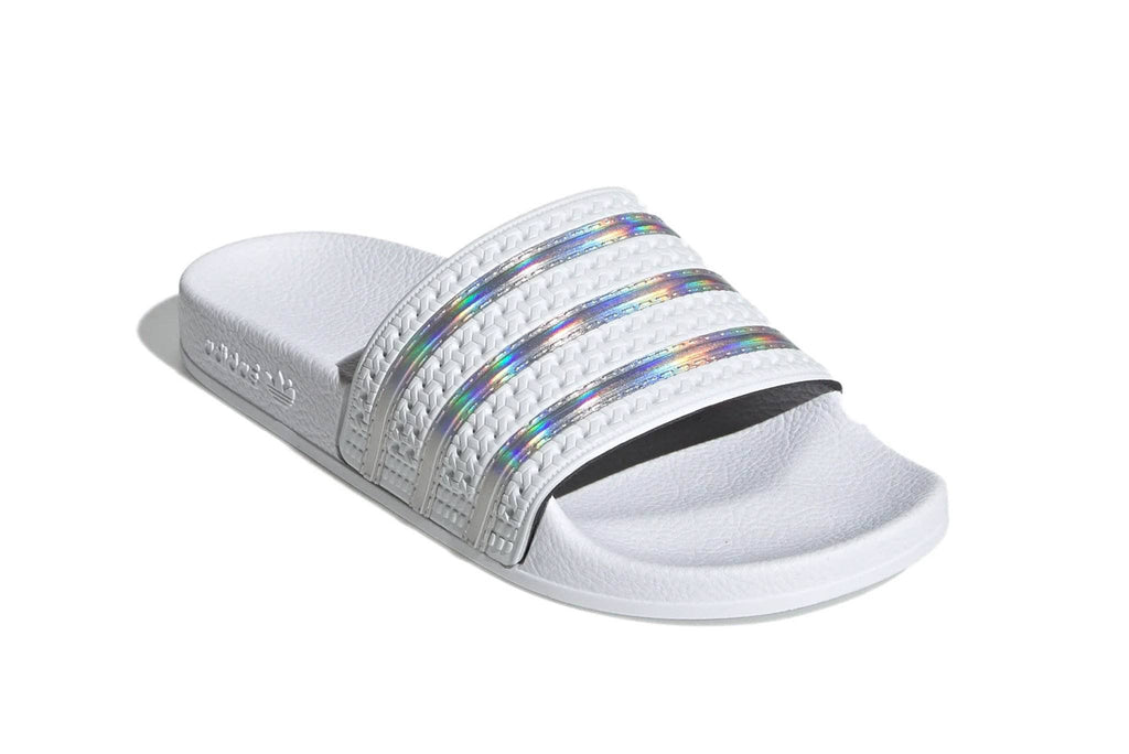 Go from pedicure to poolside in these fun, sporty slides with iridescent adidas 3-Stripes. Combine them with a tropical drink in your hand and sunshine on your toes for warm-weather relaxation. They're all the comfort you need for your cabana coasting.