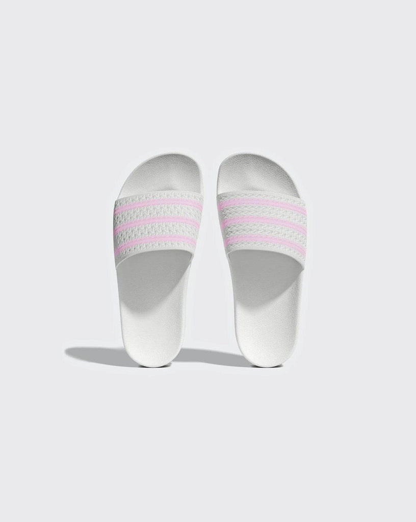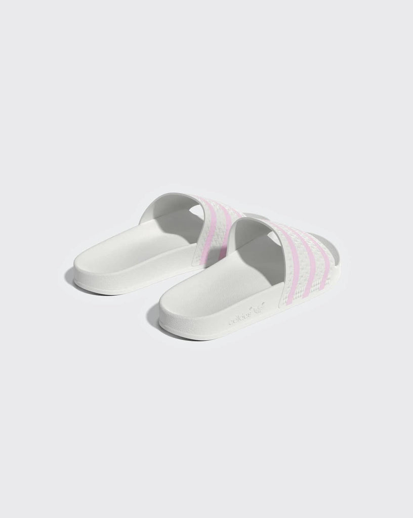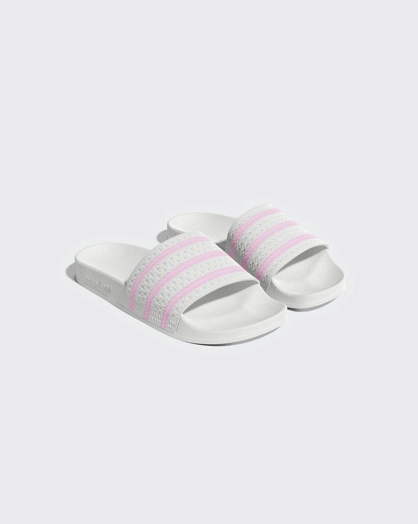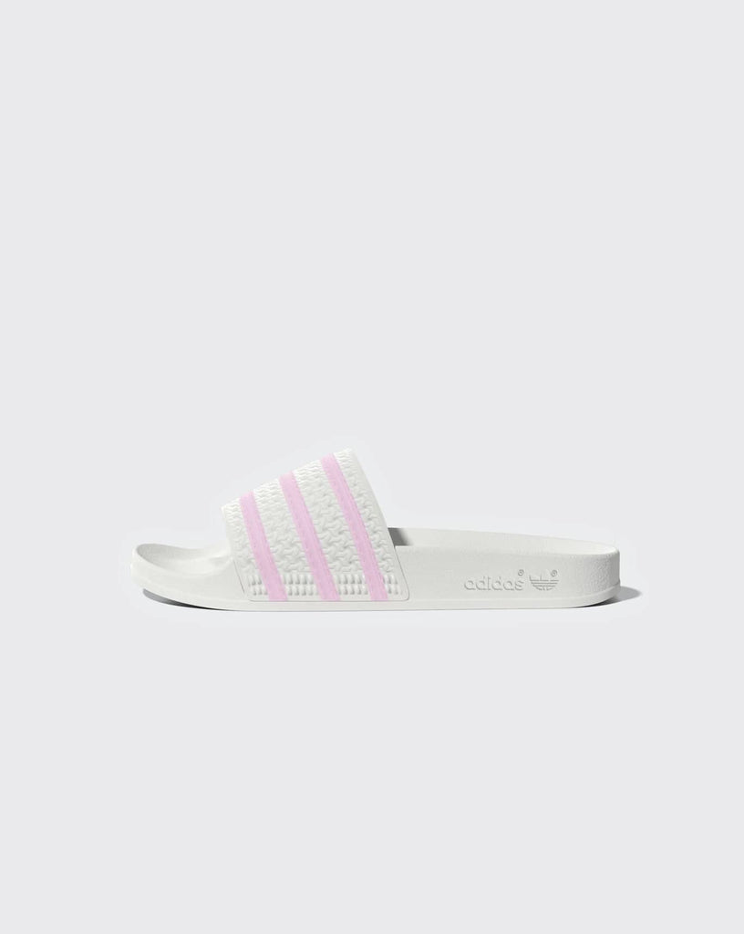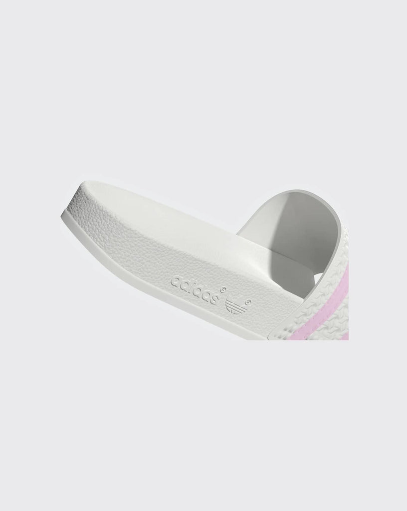 A fresh spin on the iconic OG design. Known and loved for their comfortable build, these Adidas Adilette Slides feature a classic contoured footbed perfect for casual everyday wear. A textured bandage upper with contrasting 3-Stripes brings a playful energy to the style. Slide them on with track pants or a shirt dress for elevated appeal.