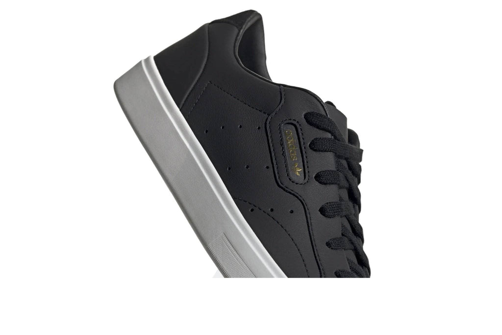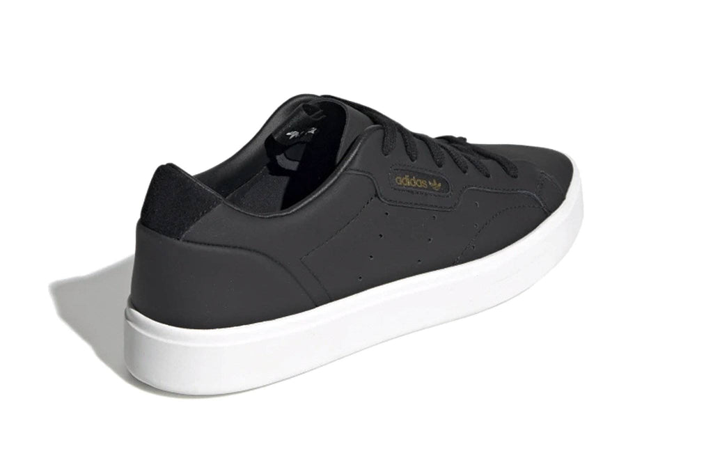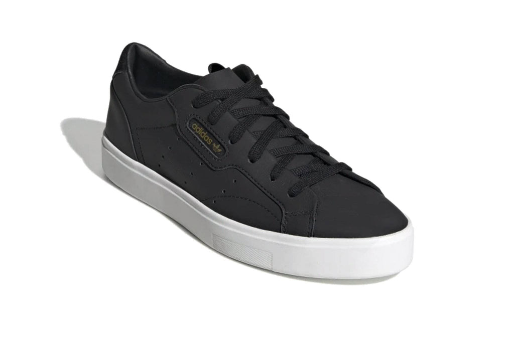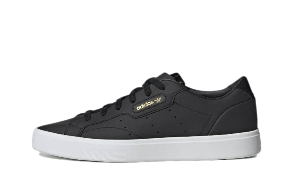Stride smoothly. The sophisticated silhouette and minimal lines of these adidas Sleek Mid Shoes are made for the ladies, but everyone falls under their spell. The supple leather upper hugs your foot and rides on a clean-lined rubber outsole. Perforated 3-Stripes keep the look crisp and streamlined.