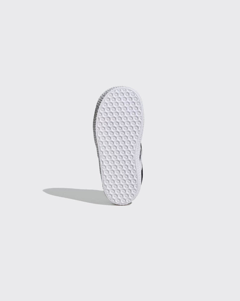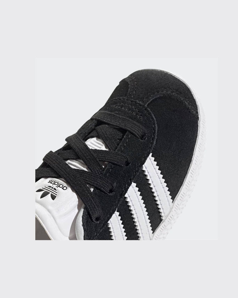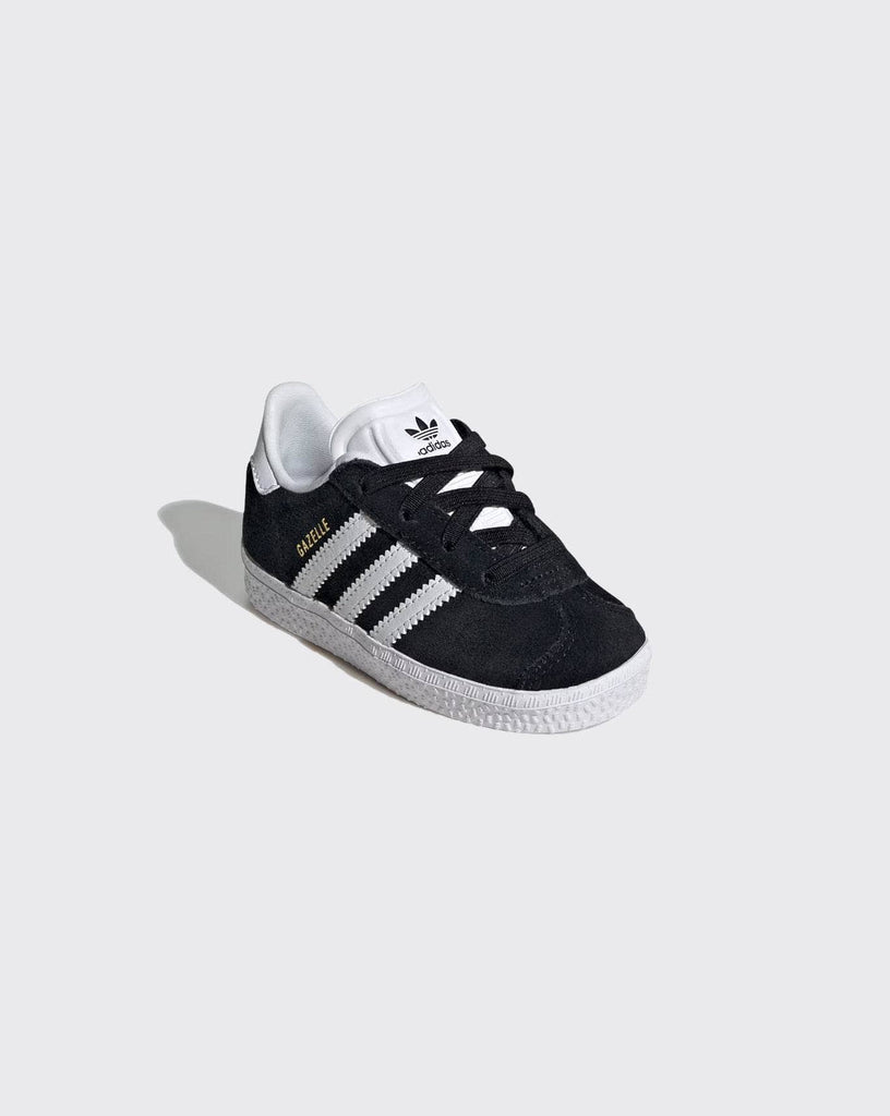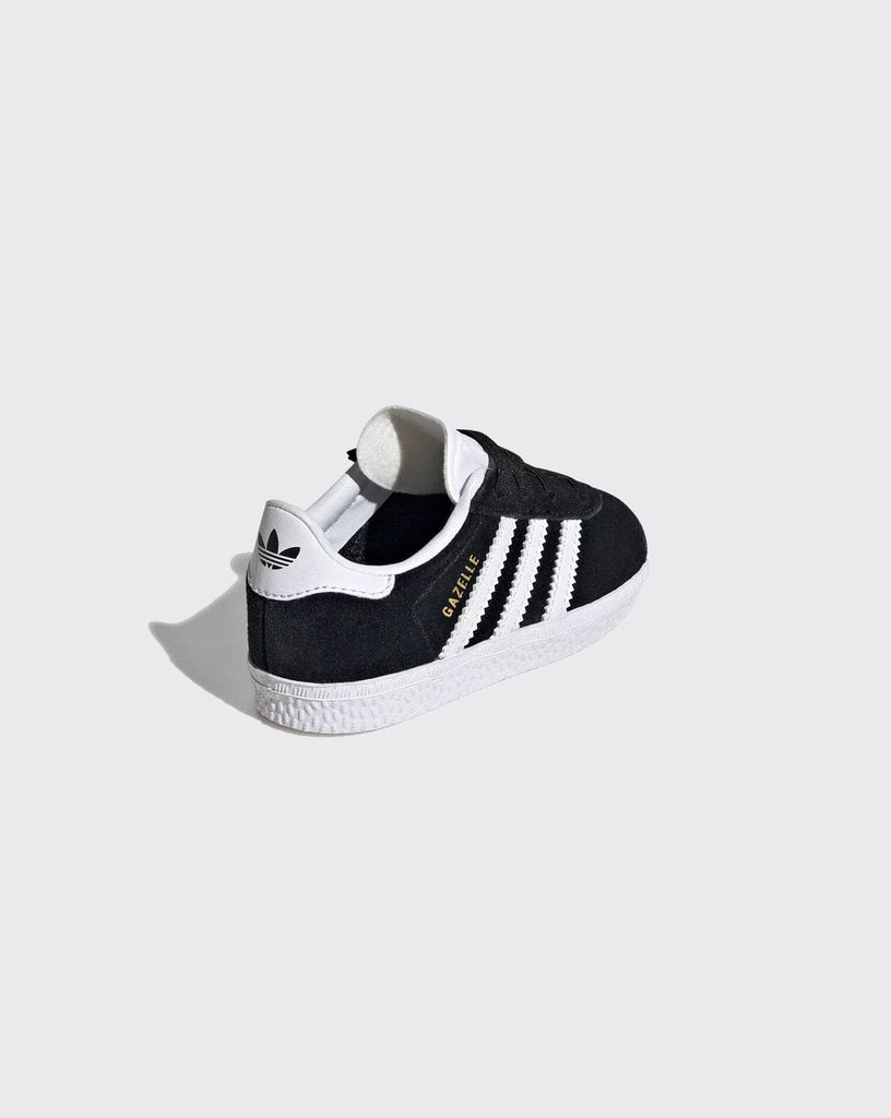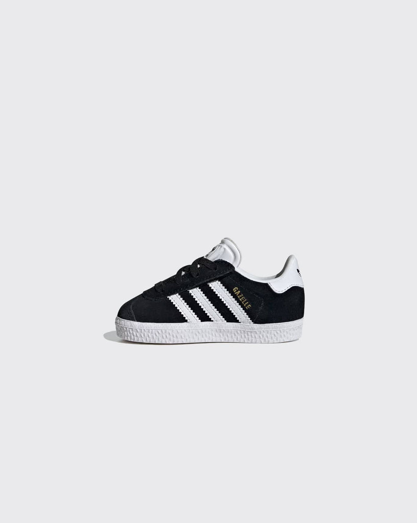 These infants' adidas Gazelle shoes let little ones get in on the iconic style. Modelled after the '91 original, the pigskin suede upper and 3-Stripes echo that era's easygoing attitude. Elastic laces make slipping them on and off a breeze while the cushioned sockliner keeps little feet comfortable. Once a performance design, these shoes are now a timeless classic passed down to the next generation.