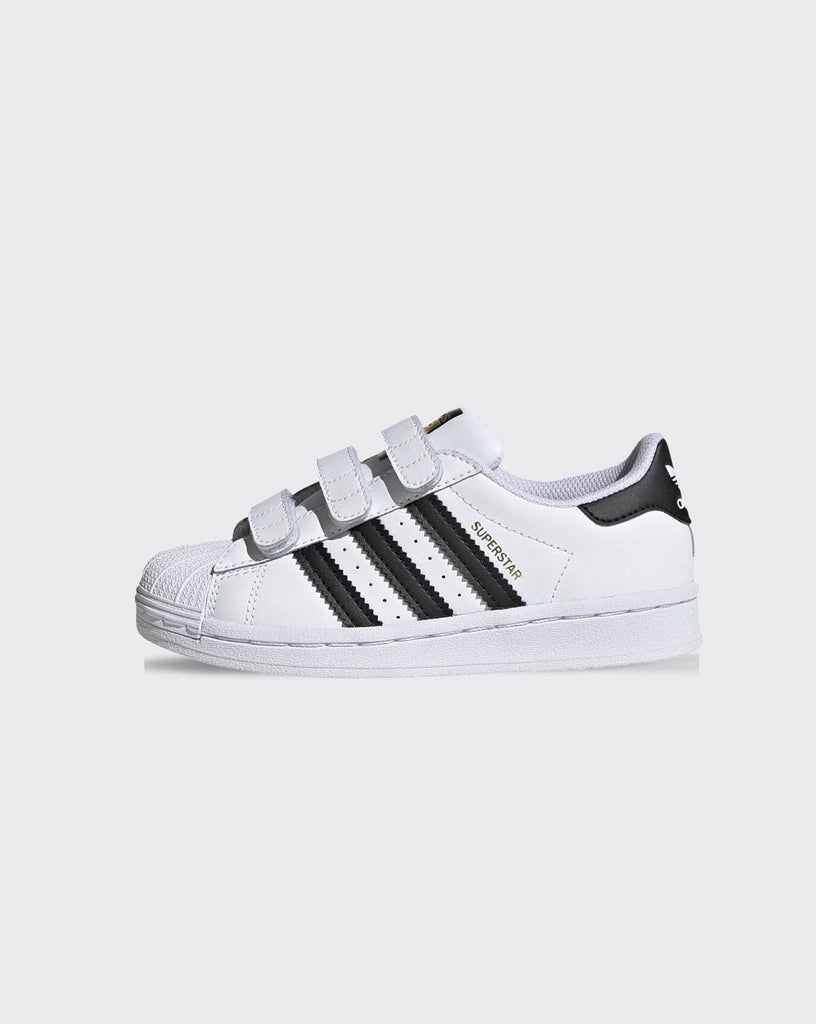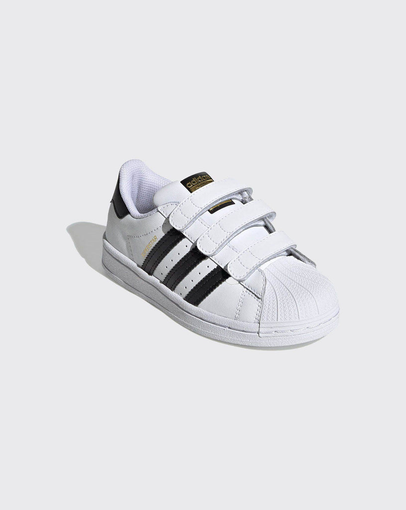50 years in the books, and ready for 50 more. These adidas Superstar Shoes stay true to the iconic B-ball look that's been beloved for decades. Strap closures take the place of laces for easy-on-and-off that kids can do themselves.