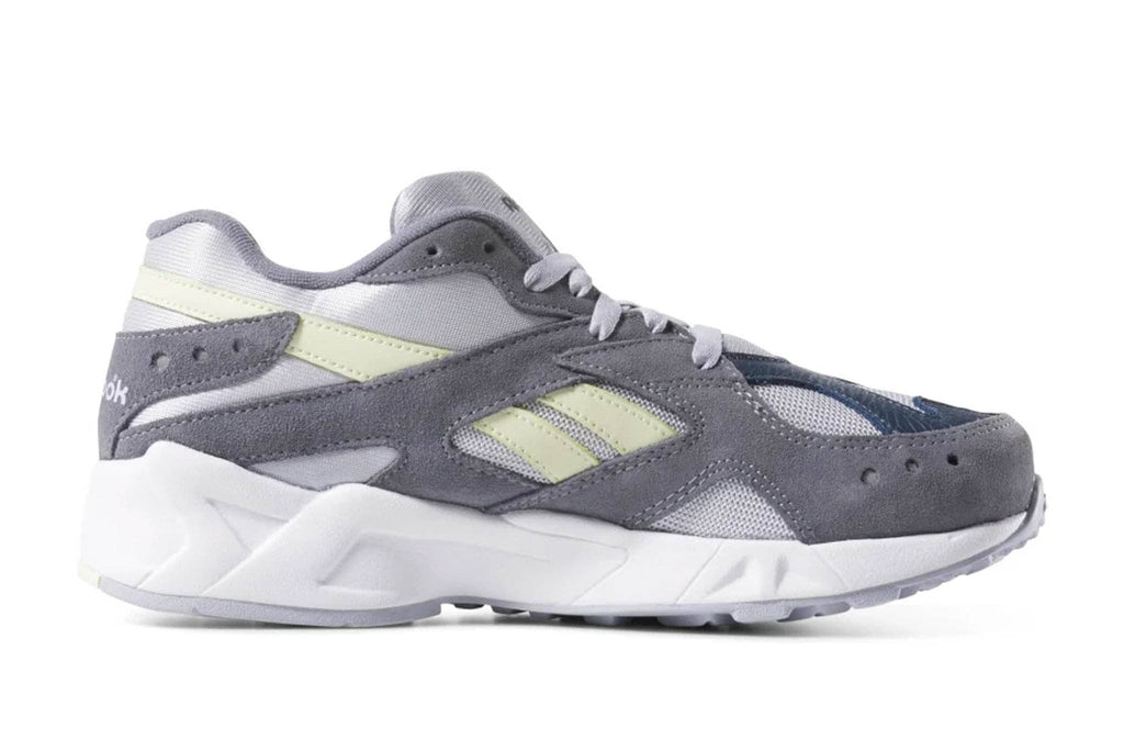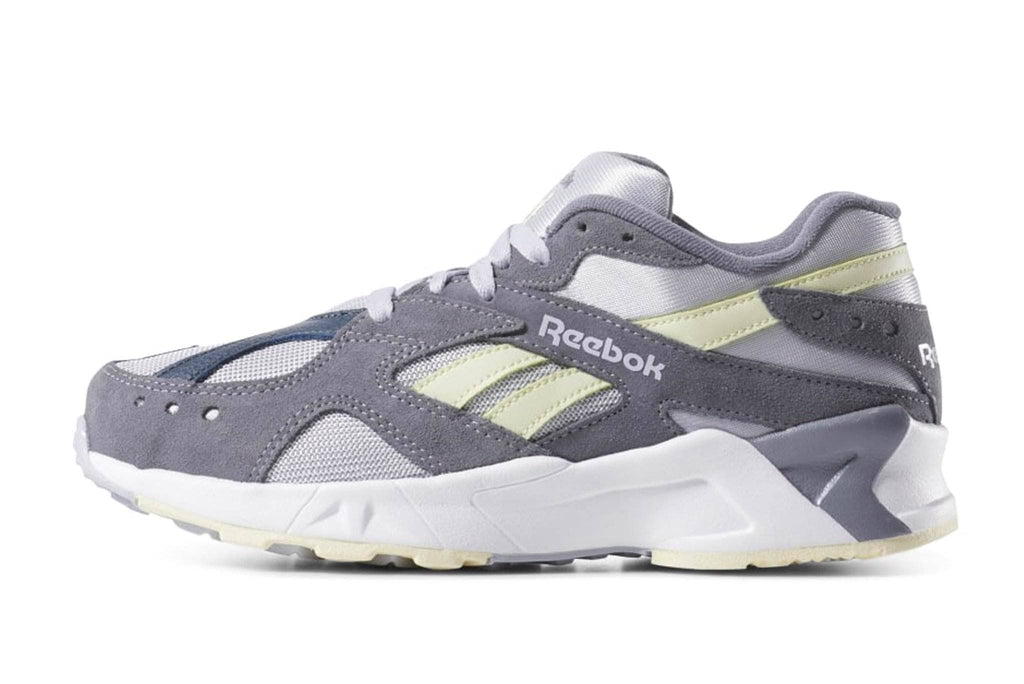 Flashback to 1993, when Aztrek ruled the road. This version of the retro runner has the authentic look and feel of the original. These shoes are made of a mix of textile, suede and leather, on top of true-to-the-era Hexalite cushioning. The old-school "Running Man" graphic from the '90s stands out on the tongue.